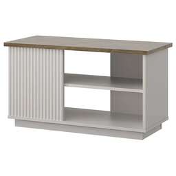 Нарядный и роскошный дизайн современной коллекции VINATI-организация гостиной, спальной группы и молодёжной комнаты. Особенностью коллекции является оригинальный внешний вид, который выделяется фрезеровкой на фасадах, планками в чёрном цвете и металлическими опорами; использование петель с доводчиками, широкий выбор позиций для оформления интерьера. Стол журнальный VINATI-оригинальная конструкция элемента выделит индивидуальность интерьера гостиной. Стол журнальный имеет прямую конструкцию. Конструкция представляет собой столешницу прямоугольной формы в древесной текстуре, которая соединяется с нижним щитом посредством вертикальных панелей из ЛДСП и МДФ; предусмотрен цокольный пояс. Основные характеристики: Корпус Материал: ЛДСП-16мм, ЛДСП-22мм (столешница), ЛДСП-16мм. Цвет: персидский жемчуг 810 PO/дуб веллингтон 370 SWN (верхние щиты). Полки: ЛДСП - 16 мм, цвет – персидский жемчуг 810 PO. Кромка: меламиновая бумага - 0,3 мм, ПВХ – 0,25 мм (фасады МДФ), 0,45 мм, 0,8 мм. Ф