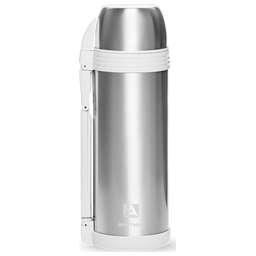 Термос с узким горлом и глухой пробкой, объем 2,2 л. Оснащен усиленной ручкой из облегченного алюминиевого сплава, пластик на корпусе создает дополнительную защиту. В комплекте две большие кружки на 400 мл. и 450 мл. с ручкой.