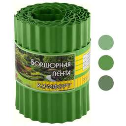 Назначение: для оформления клумб, грядок, газона, приствольных кругов деревьев и кустарни Материал: пластик, содержащий добавки, повышающие устойчивость материала к воздействию ультрафиолетовых лучей. Высота ленты -200мм, Длина ленты - 9м, Толщина ленты - 0,6мм, Диаметр рулона - 150мм, Цвет - зеленый Транспортная упаковка: 2 гофроподдона (сверху и снизу) обмотаны стрейч-пленкой.