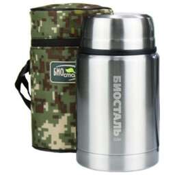 Объем 0,5л.Пищевой термос с широким горлом NTS-500B ТМ «БИОСТАЛЬ» относится к серии «ОХОТА». Термосы с широким горлом предназначены для хранения горячей пищи (преимущественно вторых блюд), холодной пищи (замороженных продуктов, мороженного и пр.), фруктов и льда. Пробка имеет дополнительную термоизоляцию и специальную кнопку для сброса пара. Термосы поставляются в комплекте со складной ложкой, которая удобно размещается в пробке и термочехлом.