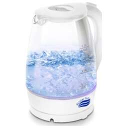 Ёмкость 1,8 л.Мощность 1500 Вт.Корпус из нержавеющей стали и первичного пластика без запаха – сделано в России.Полуавтоматическое открытие крышки Шкала уровня воды с индикатором синей подсветки.Термоконтроллер - защита от включения без воды.Защита от включения без воды.Удобный обхват ручки Поворот корпуса на подставе 360°.Дисковый нагревательный элемент из нержавеющей стали с двойным контроллером.Равномерный нагрев воды Автоматическое отключение.Провод 100% медь, длинна 0.68м, вилка с заземлением.Рабочее напряжение 220-240 В.Частота сети питания 50 Гц Размер прибора в упаковке 220х155х215 мм.Размер прибора 210х150х230 мм Размер транспортной упаковки 655х320х445 мм.