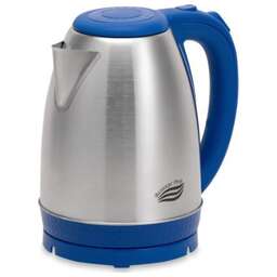 Корпус из первичного пластика.Защита от включения без воды.Автоматический и ручной выключатель с индикацией работы чайника.Поворот на подставке 360° Автоматическое отключение при снятии с подставки.Дисковый нагревательный элемент из высококачественной нержавеющей стали.Отсек для хранения шнура Объем 1,7 л. Размер прибора: 210х150х230 мм.