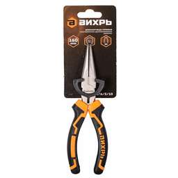 ВИХРЬ Длинногубцы прямые , 160 мм, никелированные, двухкомпонентные рукоятки