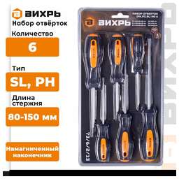 ВИХРЬ Отвертка со сменными битами 6 шт