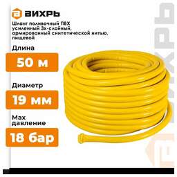 ВИХРЬ Шланг поливочный ПВХ, трёхслойный усиленный, 3/4, 50м