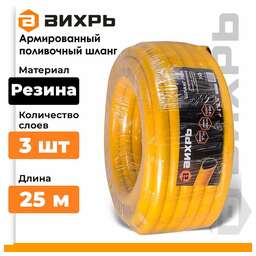 ВИХРЬ Шланг поливочный ПВХ, трёхслойный усиленный, 1", 25м