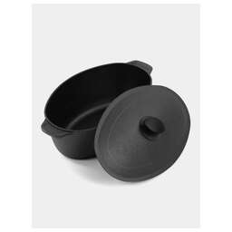с двумя ручками, чугунная крышка. Объем, л./размер, см: 34см Материал: чугун Толщина дна: 4 Толщина стенок: 3.4 Источник тепла: Все виды плит Крышка: чугунная