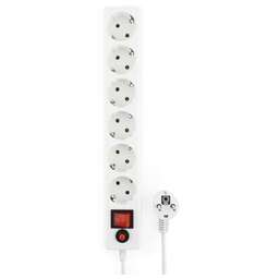 Сетевой фильтр, 5 заземлённых розеток (евростандарт), снабженных кантом, автоматический предохранитель на 10 А, номинальное напряжение: 220 В, мощность нагрузки: 2.2 кВт, номинальный ток нагрузки: 10 А, ток помехи, выдерживаемый ограничителем: до 2.5 кА.