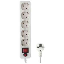 5.0 метра, 3 евро-розетки, провод ПВС 3х1,0, Напряж номинал 220В, Нагрузка макс 3500Вт, Ток номинал 16А, негорючий пластик, Цвет Белый, Выключатель двухполюсный, Крепление к стене