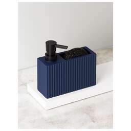 Диспенсер для мыла с карманом под губку Отсек для хранения губки Прорезиненное покрытие Губка в комплекте Материал: ABS-пластик прорезиненный, полипропилен. Размер: 16,5 х 6 х 15,5 см Объем дозатора: 220 мл Цвет: синий
