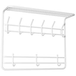 Надежная сборно-разборная конструкция. — компактная 2-х ярусная вешалка с 9-ю крючками. — удобная полка для хранения головных уборов. — допустимая нагрузка до 5 кг на крючок. — Удобный пластиковый крючок для мелочей. — Расстояние между крепёжными отверстиями 625 мм. Материал Сталь, полимерное покрытие. Габариты (Д*Ш*В) 73х58х22 см.