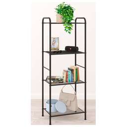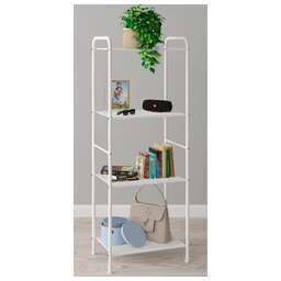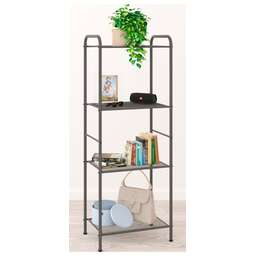 Изделие предназначено для хранения домашних и офисных предметов. Представляет собой стеллаж с 4 полками, выполненными из просечно-вытяжного листа и верхней полки из ЛДСП. Разборный каркас состоит из стальной профильной трубы 15х25 мм. В комплект входят регулируемые пластиковые опоры. Все изделие окрашено однотонной, порошковой краской. Допустимая нагрузка на полки до 8 кг. Габариты (Д*Ш*В) — 47 х 30 х 114 см