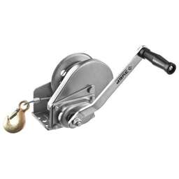 Лебедка ручная барабанная. Тяговое усилие: 0,9 т. Длина троса: 8 м. Материал троса: сталь. Храповый механизм: Одинарный. Количество крюков: 1 шт. Передаточное число: 4: 1 / 8: 1. Крюки изготовлены из специальной углеродистой стали и закалены.