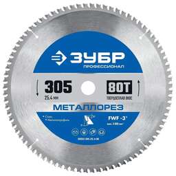 ЗУБР Пильный диск 36932-305-25.4-80, по металлу, 305мм, 2мм, 25.4мм