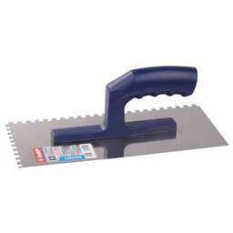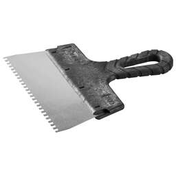 Зеркально отполированное нержавеющее полотно обеспечит надежность конструкции, лучшую защиту от коррозии, а удобная рукоять из пластмассы обеспечит комфортную работу при нанесении и распределении штукатурных смесей и клеевых составов. Преимущества Размер - 130х270 мм Материал полотна - нержавеющая сталь атериал ручки - пластмасса Зуб - 8х8 мм Использование Для нанесения и распределения штукатурных смесей и клеевых составов.
