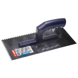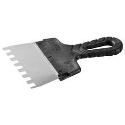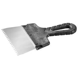 Незаменимый инструмент при работе с различными строительными смесями, профилированное полотно из нержавеющей стали обеспечивает надежность и долгий срок службы, а эргономичная двухкомпонентная рукоятка создает условия для комфортной работы. Преимущества Профилированное нержавеющее полотно Двухкомпонентная ручка Использование Предназначен для нанесения и выравнивания строительных смесей