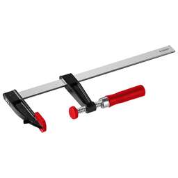 Прочные струбцины с Т-образным профилем ″T-Bar Clamp″ (ваймы) для сжатия с усилием. Головки из высокопрочного чугуна с шаровидным графитом. Т-образная стальная направляющая с сечением 50х20 мм Использование в качестве пресса для склейки деталей. Глубина зажима 42 мм. Ширина зажимных губок 45 мм Винт и фиксаторы из высококачественной стали. Для профессионального использования. Преимущества Головки из высокопрочного чугуна с шаровидным графитом. Глубина зажима 42 мм. Использование в качестве пресса для склейки деталей. Возможность жесткой фиксации на верстаке. Использование Применяется для фиксации и удержания деталей при выполнении столярных и сле-сарных работ.