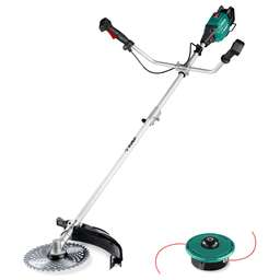 Мощность, Вт 1700. Частота вращения шпинделя, об/мин 7500. Режущий элемент леска/нож. Ширина скашивания (леска), см 42. Ширина скашивания (нож), см 25.5. Толщина лески, мм 2. Тип катушки полуавтоматическая. Тип рукоятки велосипедная. Тип штанги разъемная. Тип приводного вала жесткий. Ремень есть. Напряжение питания, В/Гц 230 / 50. Габариты, см 99x23x11. Масса изделия, кг 6.