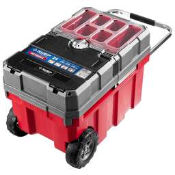 Объем этого ящика позволяет вместить в него большое количество инструментов, удобно разложить их благодаря съемной полке и легко перемещать при помощи встроенных колес и раздвижной ручки. Преимущества Большой объем ящика позволяет хранить в нем большое количество инструментов Колеса дают возможность комфортно передвигать ящик, даже если он полностью загружен. Съемная полка для размещения мелких предметов или самых востребованных инструментов. Использование Применяется для хранения инструментов и принадлежностей