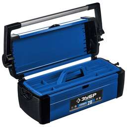 Прочный металлический ящик позволяет организвовать удобное и надежное хранение большого количества инструментов. Широкая алюминиевая рукоятка помогает сместить центр тяжести ящика если это необходимо Преимущества Металлический корпус. Съемная полка для размещения мелких предметов или самых востребованных инструментов. Металлические замки для надежного запирания ящика во время переноски. Продольный паз на крышке ящика удобно использовать для пиления досок и реек Использование Применяется для хранения инструментов и принадлежностей