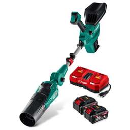 Мощная аккумуляторная воздуходувка с телескопической штангой легко справляется с уборкой большитх участков от листьев и мусора. Надежный, высокопроизводительный и экономичный BRUSHLESS двигатель с внешним ротором, мощная турбина и высокоскоростной TURBO-режим помогают эффективной и быстрой работе. Регулировка угла обдува, длины штанги и наклона рукоятки позволяет пользователю адаптировать воздуходувку под конкретные задачи и условия работы, обеспечивая комфорт и эффективность при использовании. Комплектация с двумя аккумуляторами повышенной емкости и быстрозарядным устройством позволяет сразу приступить к работе. Преимущества Современные аккумуляторы универсальной системы LMS повышеннойемкости 4.0 А*ч позволяют инструменту работать дольше и эффективнее Бесщеточный двигатель BRUSHLESS обладает рядом преимуществ по сравнению с обычным щеточным двигателем: - высокий крутящий момент – в 2 раза выше, чем у аналогичного щеточного двигателя, - высокий КПД благодаря максимально эффективному преобразованию электромагнитной энергии в механическую (ввиду отсутствия перекоммутаций), - повышенная надежность ввиду отсутствия искрения и трения Мощная и высокопроизводительная - 4 скорости работы + TURBO -режим позволяют быстро обрабатывать большие территории и сложные участки Центробежная эжекторная турбина создает дополнительное всасывание воздуха, что увеличивает скорость и мощность воздушного потока без дополнительных затрат энергии Панель управления с индикацией заряда батарей и режимо…