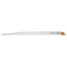Предназначены для распилочных работ по твердой и мягкой древесине, обрезке стволов и сучьев деревьев, Применяется на сабельной электрической ножовке при резке: - Древесина до 250мм, Преимущества Полотна изготовлены из специальной высоколегированной углеродистой стали, обеспечивающей необходимые показатели гибкости и прочности при работе с древесиной. Повышенная рабочая длина полотна полволяет обрабатывать строительные детали и заготовки увеличеных размеров Быстросъёмный хвостовик 1/2″ обеспечивает надежную фиксацию полотна патроне сабельной электроножовки Использование Применяется на сабельной электрической ножовке для быстрой и грубой резки древесины.