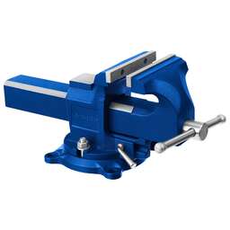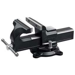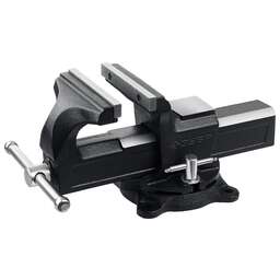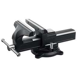 Профессиональный особопрочный инструмент для быстрой инадёжной фиксации деталей в промышленных условиях Преимущества Износостойкий ковкий чугун с шаровидным графитом Механизм быстрой фиксации для ускорения рабочего процесса, экономии сил и рабочего времени. Сменные губки изготовлены из высококачественной инструментальной стали и закалены до твердости 45-53HRC и отшлифованы Поворотное основание позволяет перемещать корпус тисков в горизонтальной плоскости на угол от 0 до 360 градусов Усилие зажима 3500 кг/см3 На рабочую поверхность губок нанесены рифления для надежного и безопасного крепления деталей Увеличенная наковальня на корпусе тисков для выполнения слесарных работ Фиксация тисков на столе при помощи винтов и гаек в специальные отверстия в основании Прочные стальные рукоятки для надежной фиксации инструмента Использование Для зажима различных предметов или их отдельных составных элементов