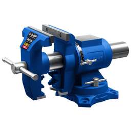 Профессиональный многофункциональный инструмент из высококачественного чугуна с двойным зажимом для труб и возможностью поворота в двух плоскостях на 360 градусов. Преимущества Многофункциональные с поворотом в двух плоскостях на 360 градусов Корпус и подвижная планка изготовлены из высококачественного чугуна марки СЧ-25 по ГОСТ 26359 Цилиндрическая форма и закрытый корпус тисков обеспечивают плавный ход подвижной планки, отсутствие люфта и защиту механизма от повреждений и загрязнений. Сменные губки из высококачественной инструментальной стали закаленной до 45-53HRC тщательно отшлифованы На рабочую поверхность губок нанесены специальные рифления для надежного и безопасного крепления деталей Специальные губки для закрепления труб и деталей круглой формы Поворотное основание позволяет перемещать корпус тисков в горизонтальной плоскости на угол от 0 до 360 градусов Увеличенная наковальня на корпусе тисков для выполнения слесарных работ Фиксация тисков на столе при помощи винтов и гаек в специальные отверстия в основании Специальная разметка на корпусе для точного определения угла поворота и длинны хода Прочные стальные рукоятки для надежной фиксации инструмента Использование Для зажима различных предметов или их отдельных составных элементов в том числе и округлой формы