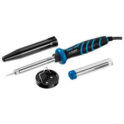 Паяльное оборудование ЗУБР изготовлено из высококачественных современных материалов. Профессиональный подход и учет всех тенденций развития рынка обеспечивают высокую надежность и длительный срок службы. Преимущества Эргономичная двухкомпонентная рукоятка Жало с защитным покрытием Припой и подставка в комплекте Антистатическая защита Использование Электропаяльник непрерывного нагрева применяется для монтажа электронных компонентов на печатную плату, пайки медных проводников сечением до 1.2 мм2