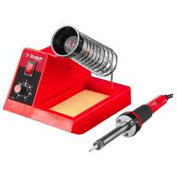 Паяльное оборудование ЗУБР разработано в соответствии с высокими требованиями и обеспечивает качественную работу на протяжении всего срока службы. Использование современных материалов и передовых технологий обеспечивает долговечность оборудования, удобство в работе и гарантированно высокий результат. Преимущества Эргономичная двухкомпонентная рукоятка Жало с защитным покрытием Припой и подставка в комплекте Антистатическая защита Использование Электропаяльник непрерывного нагрева применяется для монтажа электронных компонентов на печатную плату, пайки медных проводников сечением до 1 мм2