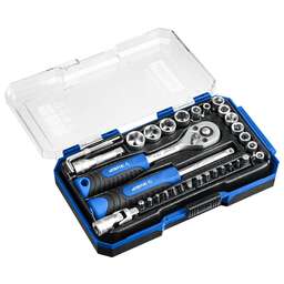 Специальный набор для обслуживания крупногабаритной техники и оборудования Преимущества Высококачественная сталь Хромированное покрытие для защиты от коррозии Многоступенчатая закалка для придания баланса прочности и твердости Профиль FLANK для быстрого и точного захвата крепежа Использование Применяется для работы с крепежом