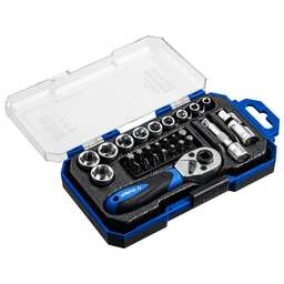 Тип набора: Набор инструментов Бренд: ЗУБР Модель: 27670-H142 PartNumber/Артикул Производителя: 27670-H142 Количество предметов: 142 предмета Жесткий кейс: ДА Страна производства: Китай Покрытие: хром Отвертки PH (крестовый Phillips), список: PH1 x 75, PH2 x 38, PH2 x 100 мм Отвертки PZ (крестовый Pozidriv), список: SL5.5 x 75, SL6.5 x 38, SL6.5 x 100 мм Свечные головки : ДА Минимальный размер головки: 2 мм Максимальный размер головки: 32 мм Головки 1/4"DR, список: Головки FLANK 4, 4.5, 5, 5.5, 6, 7, 8, 9, 10 мм Головки E-TORX E4, E5, E6, E7, E8 Головки 3/8"DR, список: Головки 12-гр 6, 7, 8, 9, 10, 11, 12, 13, 14, 15, 17, 18, 19, 21, 22 мм Головки 1/2"DR, список: Головки 12-гр 8, 10, 12, 13, 14, 15, 16, 17, 18, 19, 20, 21, 22, 23, 24, 25, 27, 30, 32 мм Головки E-TORX E10, E12, E14, E16, E20 Головки свечные 16, 21 мм Дополнительно в наборе, 1/4"DR: Шарнир карданный Удлинители для головок 50, 100, 150 мм Удлинитель гибкий 150 мм Вороток-отвертка 150 мм Переходник для бит HEX1/4?F х SQ1/4?F Дополнительно в наборе, 3/8"DR: Шарнир карданный Удлинители для головок 75, 150 мм Адаптеры 3-позиционные 3/8?F x 1/2?M, 3/8?F x 1/4?M Дополнительно в наборе, 1/2"DR: Шарнир карданный Удлинители для головок 75, 250 мм Вороток Г-образный 250 мм Вороток Т-образный 250 мм Максимальный размер ключа: 24 мм Комбинированные ключи, список: 6, 7, 8, 9, 10, 11, 12, 13, 14, 15, 16, 17, 18, 19, 21, 22, 24 мм Шестигранные ключи, список: H2.5, 3, 4, 5, 6, 7, 8, 10, 12, 14 Набор бит H/HEX (шестигранник), …