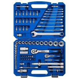 Количество предметов: 82 предмета. Набор бит Ph (крест), список: PH 1, 2, 3, 4. Набор бит Pz (крест), список: PZ 1, 2, 3, 4. Набор бит SL (шлиц), список: SL 8, 10, 12. Набор бит H/HEX (шестигранник), список: H8, 10, 12, 14. Набор бит Torx, список: T 40, 45, 50, 55. Габариты упаковки (ед) ДхШхВ: 0.4x0.29x0.09. Вес упаковки (ед): 4.3. Страна производства: Китай. Покрытие: хром. Головки 1/2"DR, список: 14, 15, 16, 17, 18, 19, 20, 22, 24, 27, 30, 32 мм свечные 16, 21 мм. Головки 1/4"DR, список: 4, 4.5, 5, 5.5, 6, 7, 8, 9, 10, 11, 12, 13, 14 мм. Дополнительно в наборе, 1/2"DR: Шарнир карданный Удлинители для головок 125, 250 мм Адаптер 3-позиционный 1/2?M x 3/8?F Переходник для бит 1/2?F x 5/16?HEX. Дополнительно в наборе, 1/4"DR: Шарнир карданный Удлинители для головок 50, 100 мм Удлинитель гибкий 150 мм Вороток Т-образный 150 мм Переходник для головок 1/4?HEX х 1/4?SQ Биты-головки: PH 1, 2; PZ 1, 2; SL 4, 5.5, 7; T 8, 10, 15, 20, 25, 30; H 3, 4, 5, 6. Комбинированные ключи, список: 8, 10, 11, 12, 13, 14, 17, 19, 22 мм. Максимальный размер ключа: 22. Минимальный размер ключа: 8. Свечные головки : есть. Гарантия: 12 мес.. Материал бит: CR-V (хромо-ванадиевая сталь). Комплектация ключей: комбинированные. Материал ручек инструмента: многокомпонентная. Материал: хромованадиевая сталь (CR-V). Система измерения: метрическая. Комплектация: жесткий кейс, набор бит, набор гаечных ключей, набор головок. Прочий инструмент: вороток-отвертка, трещотка. Комплектация головок: шестигранные. При…