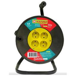 Удлинитель электрический "Калибр УСК-50" на катушке предназначен для работы в сетях переменного тока напряжением 230±10%, ~50 Гц. При помощи удлинителя легко подключить удаленные от стационарной розетки электроприборы, имеющие шнур с плоской или круглой вилкой. Незаменим на стройке, на садовом участке, в промышленности и в быту. *в зависимости от поставки, внешний вид катушки может отличаться от представленного на фотографии. Сечение 0,75 мм2. Максимальная нагрузка 6 А, 1300 Вт. Длина кабеля 50 м.