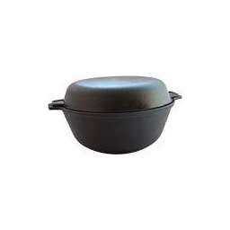 Кастрюля с чугунной крышкой-сковородой Объем: 2,5 л Крышка: чугун Ручка: два ушка Дно внешнее: плоское Вес: 3.7 кг