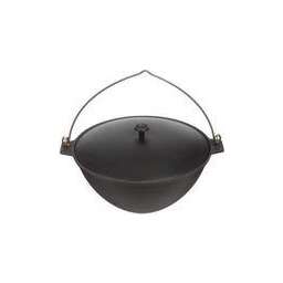 Котел с дужкой с чугунной крышкой-сковородой Объем: 5 литров Крышка: Чугунная Ручка: Дужка Дно внутреннее: Полусфера Дно внешнее: Плоское Диаметр дна: 11,5 см Тип плиты: для всех типов, кроме индукционных Особенности: повышенная долговечность и износостойкость; утолщенное дно до 6 мм; природное антипригарное покрытие; высокая теплопроводность и эргономичность; удобство в использовании; идеальное распределение тепла по всей поверхности посуды, длительное сохранение тепла, вследствие чего получаем эффект томления; возможность использования минимального количества масла и соли; подходит для всех типов плит и печей