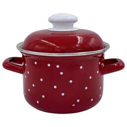 Кастрюля с 2 ручками Объем, л./размер, см: 1.5 л Материал: эмалированная сталь Коллекция/серия: White dots Торговая марка: Лысьвенские эмали Толщина дна: 0.8 Толщина стенок: 0.8 Источник тепла: Все виды плит Крышка: эмалированная Внутреннее покрытие: эмаль Внешнее покрытие: эмаль