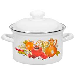 Объем: 2 л; Высота: 11,5 см; Страна: Россия; Диаметр: 18 см. Материал эмалированная сталь Крышка Количество ручек 2 Материал крышки металл Может быть использована на всех видах кухонных плит; Подходит для мытья в посудомоечной машине
