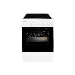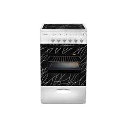 (ВхШхГ) 85х50х60см. 4 электр. конфорки. Духовка электрич. Объем 60л. Очистка духовки традиционная. Подсветка духовки. 2 стекла дверцы духовки. Выдвижной ящик для принадлежностей. Цвет белый. Стекл. крышка стола.