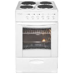 Рабочая поверхность: Рабочий стол: эмаль Количество конфорок: 4 традиционные Мощность передней левой конфорки: 1 кВт (145 мм) Мощность передней правой конфорки: 1.5 кВт (180 мм) Мощность задней левой конфорки: 1.5 кВт (180 мм) Мощность задней правой конфорки: 1 кВт (145 мм) Духовой шкаф: Объём: 57 л Мощность верхнего ТЭНа: 0.8 кВт Мощность нижнего ТЭНа: 1.2 кВт Температура регулируется от 50 до 300 °С Подсветка Дополнительная информация: Габариты: 85х50х60 см Дверца съёмная с двойным стеклом Выдвижной ящик для хранения кухонных принадлежностей Класс энергосбережения: A Плита комплектуются одним противнем, одной решеткой духовки, соединительным электрошнуром и розеткой При включении жарочного шкафа блокируется правая ближняя конфорка.