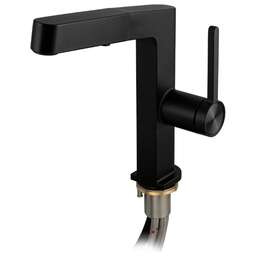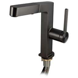 Смеситель для кухонной мойки и раковин, латунный квадратный корпус, хромированный, боковой, с высоким С-образным изливом, шаровый. Крепление резьба - гайка, картридж d = 40 мм, литая ручка. Аэратор для экономии воды. Габаритные размеры: высота 360 мм, длина 230 мм, размер посадочного седла 45 мм, длина резьбы 50 мм, длина подводки 500 мм. Вес - 1,400 кг, объём - 0,00800 м3. В комплекте паспорт, корпус с изливом, подводка 1/2, крепеж, набор прокладок.