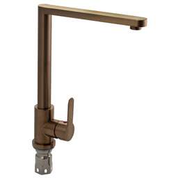 Смеситель для кухонной мойки и раковин, литой корпус, из нержавеющей стали марки 304, с высоким гибким изливом чёрного цвета, с аэратором для экономии воды, шаровый, цвет бронза. Крепление резьба - гайка, картридж d = 35 мм, ручка литая. Такая модель может использоваться на домашней кухне, на даче, в медицинских учреждениях и общественных местах. Габаритные размеры: высота до 350 мм, длина до 250 мм, диаметр посадочного седла 45 мм, длина резьбы 55 мм, длина подводки 450 мм. Вес - 1,8 кг, объём - 0,0042 м3. В комплекте паспорт, корпус с изливом, подводка 1/2, крепеж, набор прокладок.