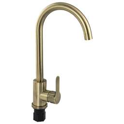 Смеситель для кухонной мойки и раковин, цвет под МЕДЬ, литой корпус, из нержавеющей стали марки 304, с высоким литым Г-образным изливом, шаровый. Крепление резьба - гайка, картридж d = 35 мм, ручка литая. Аэратор для экономии воды. Такая модель может использоваться на домашней кухне, на даче, в медицинских учреждениях и общественных местах. Габаритные размеры: высота 310 мм, длина 240 мм, диаметр посадочного седла 50 мм, длина резьбы 60 мм, длина подводки 450 мм. Вес - 1,700 кг, объём - 0,00647 м3. В комплекте паспорт, корпус с изливом, подводка 1/2, крепеж, набор прокладок.