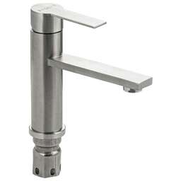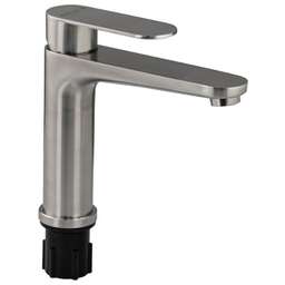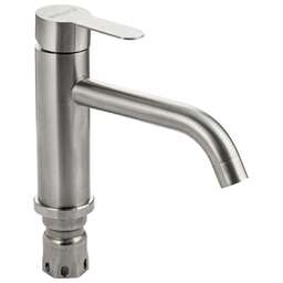 Смеситель для раковины, высокий матовый литой корпус, из нержавеющей стали марки 304, с изогнутым изливом, ручка шток, шаровый. Крепление резьба - гайка, картридж d = 35 мм. Аэратор для экономии воды. Такая модель может использоваться на домашней кухне, на даче, в медицинских учреждениях и общественных местах. Габаритные размеры: высота 350 мм, длина 210 мм, длина излива 170 мм, диаметр посадочного седла 50 мм, длина резьбы 60 мм, длина подводки 450 мм. Вес - 1,400 кг, объём - 0,00445 м3. В комплекте паспорт, корпус, подводка 1/2, крепеж, набор прокладок.