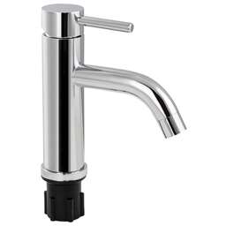 Смеситель для раковины, хромированный литой корпус, из нержавеющей стали марки SUS 304, с коротким литым изливом, литая ручка, шаровый. Крепление резьба - гайка, картридж d = мм. Аэратор для экономии воды. Такая модель может использоваться на домашней кухне, на даче, в медицинских учреждениях и общественных местах. Габаритные размеры: высота 155 мм, длина 165 мм, диаметр посадочного седла 45 мм, длина резьбы мм, длина подводки 450 мм. Вес - 1.3 кг, объём - 0.00234 м3. В комплекте паспорт, корпус, подводка 1/2, крепеж, набор прокладок.