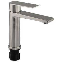 Смеситель для раковины, высокий матовый литой корпус, из нержавеющей стали марки 304, с прямым изливом, ручка шток, шаровый. Крепление резьба - гайка, картридж d = 35 мм. Аэратор для экономии воды. Такая модель может использоваться на домашней кухне, на даче, в медицинских учреждениях и общественных местах. Габаритные размеры: высота 285 мм, длина 185 мм, диаметр посадочного седла 50 мм, длина резьбы 55 мм, длина подводки 450 мм. Вес - 1.21 кг, объём - 0.00438 м3. В комплекте паспорт, корпус, подводка 1/2, крепеж, набор прокладок.