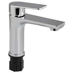 Смеситель для раковины, хромированный литой корпус, из нержавеющей стали марки SUS 304, с коротким литым изливом, литая ручка, шаровый. Крепление резьба - гайка, картридж d = 35 мм. Аэратор для экономии воды. Такая модель может использоваться на домашней кухне, на даче, в медицинских учреждениях и общественных местах. Габаритные размеры: высота 165 мм, длина 150 мм, диаметр посадочного седла 40 мм, длина резьбы 45 мм, длина подводки 450 мм. Вес - 0.56 кг, объём - 0.00234 м3. В комплекте паспорт, корпус, подводка 1/2, крепеж, набор прокладок.