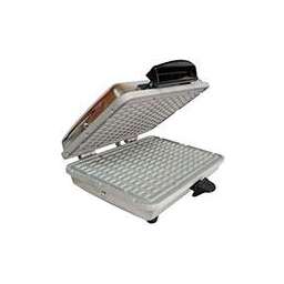 Тип - электровафельница Характеристики: Мощность: 800 Вт Тип вафель: прямоугольные тонкие Количество вафель: 1 шт Теплоизолированные ручки Материал корпуса: металл Антипригарное покрытие Длина сетевого шнура: 1.5м Цвет: серебристый