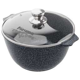МЕЧТА. 45802И Кастрюля индукционная 5л. со стеклянной крышкой. Сверхпрочное антипригарное покрытие Greblon на водной основе без PFOA. Толщина покрытия до 55 микрон. Ресурс более 12 000 циклов. Серия "Гранит black Induction Pro". Толщина дна 7мм., толщина стенок 3,6-4мм.