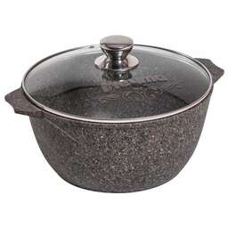 Кастрюля индукционная 4л. со стеклянной крышкой. Сверхпрочное антипригарное покрытие Greblon на водной основе без PFOA. Толщина покрытия до 55 микрон. Ресурс более 12 000 циклов. Серия "Гранит black Induction Pro". Толщина дна 7мм., толщина стенок 3,6-4мм.